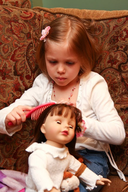 Reese has been asking for a “friend for her grown up doll” and wouldn’t you know it, I had bought one at Christmas time and didn’t gift it. Perfect!