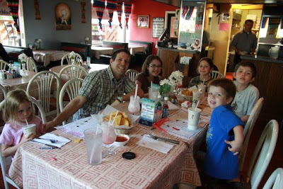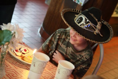 At the end of the meal, the staff decorated her with a fancy hat and sang happy birthday. Where else do you get flan with a candle in the middle of it, and gobs of whipped cream and cherries for the eyes? KitKat, Reese, and I had a great time helping her finish that!