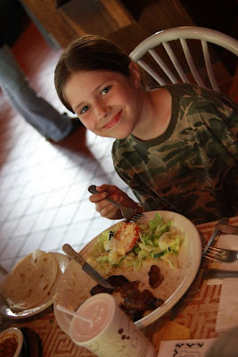 We went to our favorite Salvadorian restaurant for dinner, and Necco ordered her very own T-bone. Before the dinner started, she asked how old kids had to be to get a meal from the “real” menu. She was delighted that there was no minimum age requirement.