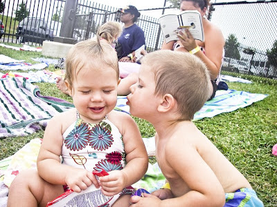 Lexi quickly got tired of tearing up her knees crawling, and so she came up with a less-painful alternative. Apple joined her in the pool crawl.
