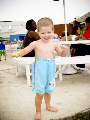 Apple’s swim shorts were a little big, and so I kept having to hike them up. Here he is doing the Urkle dance.