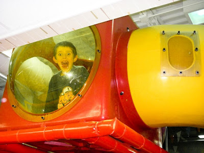 After devouring 20 McNuggets and 2 large fries (between the 5 kids–not each!), the kids ran into the play area. Yes, even KitKat. She was climbing around with the rest of them and equally enthusiastic about it. I think today might have been the first time that AJ climbed all the way up. Here he is enthusiastically telling me, “I went down the curly slide all by myself!”