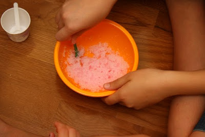 The girls and I (minus my tom-boy Necco) started off with the Manicure Kit. The kit came with a very detailed instructions as well as everything we needed to turn our house into a day spa! We were all so amazed by the crystal mud that we got the boys involved, too. The booklet contains lots of fun facts and questions, including information on crystal mud, which we learned can hold more than 300 times its mass in water (it’s the same stuff that’s inside disposable diapers….eww!). Everyone was oohing and ahhing. Loved it.