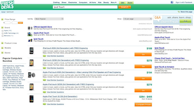 Let me introduce you to FreshDeals.com. Not only can you search on FreshDeals for items that you are shopping for to compare prices and store locations (such as this search I did for iPod Touch):