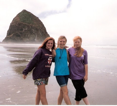 Karen (another friend), me, and Amy on the beach in Oregon (I think we were 16-17 here)