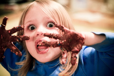 On Thursday, the kids and I tried an amazingly easy and sinfully yummy recipe posted on a friend Melinda’s blog the other day. Reese got a little out-of-hand with the melted chocolate and sprinkles….