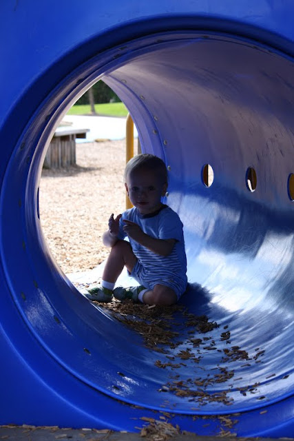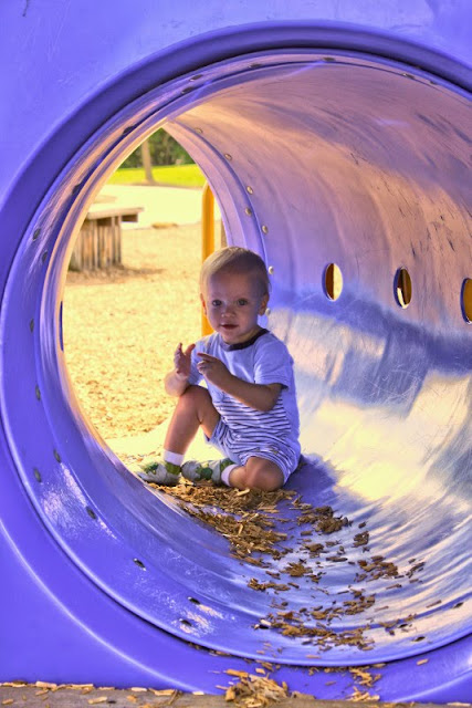 Ahhh. Routine once again. The first week of school has been fabulous. While the kids have been loving their new teachers, AJ and I have been loving the gorgeous early Fall weather. We couldn’t have asked for a better week. On Wednesday, we got together with some of our favorite people at one of our favorite parks. I snapped plenty of pictures, of course, and one of those pictures was one that I instantly knew was not going to turn out. And that made me so sad, because my little toddling friend was being so darn cute in this tunnel. I WANTED it to turn out.