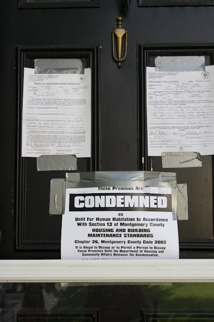 Towards the end of the day yesterday, I began hearing from the Health Department. They sent out an inspector around 4:30. He checked out the neighbor’s house, took pictures, and slapped these lovely signs on their front door. It’s really depressing to be living next door to this, but I am thrilled to see those signs there.