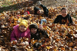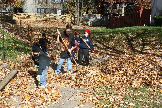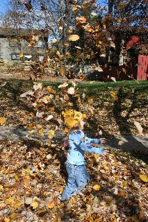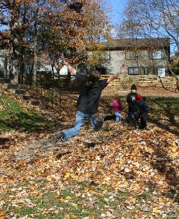I sure wish the warm weather was still around! Still, the kids enjoyed some time outside today on their day off school. Noodle asked if she could rake leaves after breakfast…How could I say no? When I went to check on her, she was raking leaves in the common area to the side of our townhouses. Haha! I pointed her to our front yard, which really needed some help! After making a nice, big leaf pile, the kids all had fun jumping. Yipee!
