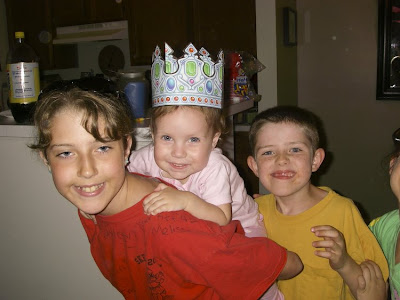 We helped cute Kate celebrate her 2nd birthday this afternoon. As soon as we got to Kate’s pool, the little kids lined up on the edge. I tried to rush into the pool to take a picture, but of course, I wasn’t quite fast enough and the kids had already started to move. Dontcha just love Apple’s silly face (that’s what Krista is pointing and laughing at!). And, yes, that’s Rachel hiding underwater on the left bottom corner to avoid the picture!