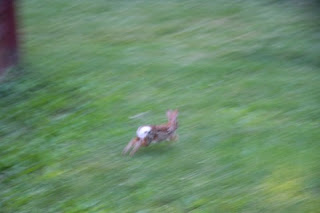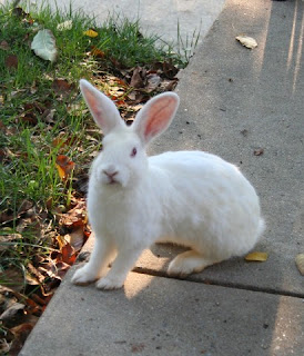Then one day, we looked out an saw a bright white, fluffy rabbit (Lucy). Not the typical wild variety. She started coming by our yard on a regular basis, too.