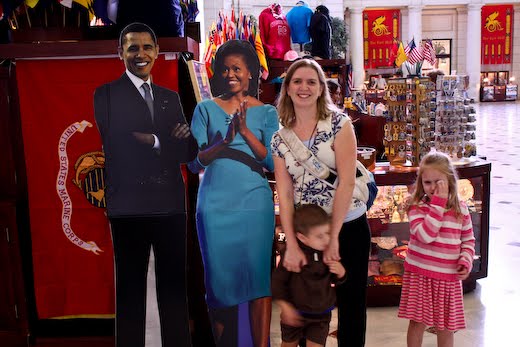 Right after this picture was taken, we avoided national catastrophe when I rescued the President from accident. AJ was feeling a little restless at that point and decided that he’d try to hide behind the Obamas. Let’s just say that the President and First Lady were not feeling very steady on their feet, and he almost did a face plant right there in the middle of Union Station.