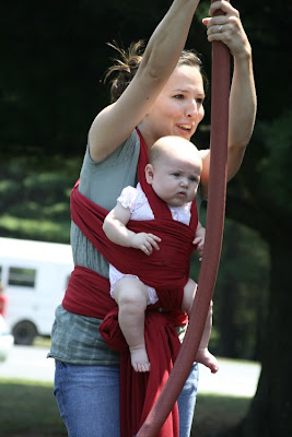 Krista went swinging with Brooklyn!! What a Mama! She also was a great advertisement for my wraps (she was wearing the wrap that I gave her)…a young grandma stopped her and asked where she got her great baby carrier. Krista just pointed to me and said, “She makes them!” Cool!