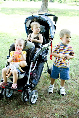 I got to the park early and discovered Apple had fallen asleep in the back of the car, so I sat and read my book for a while. I love finding moments of peace in the middle of my crazy days! He woke up from his short nap in a happy mood and ready to eat lunch. Somehow, we avoided getting bit by all of the red ants crawling all over our picnic blanket. The water bottles turned out to be handy little ant-killers.