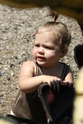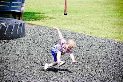 After lunch, we played! There must have been a 20 degree difference between the shady lunch spot and the full-sun black tire-floored playground.