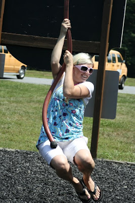 Melissa was eyeing the zip-line swing thing, and as soon as a group of KIDS left, we ADULTS took over. Whee!!