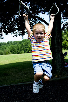 Apple kept asking me to lift him up on the “monkey things.” I lifted him up and left him there to take a few pictures. He had a panicked look on his face, but he held tight!